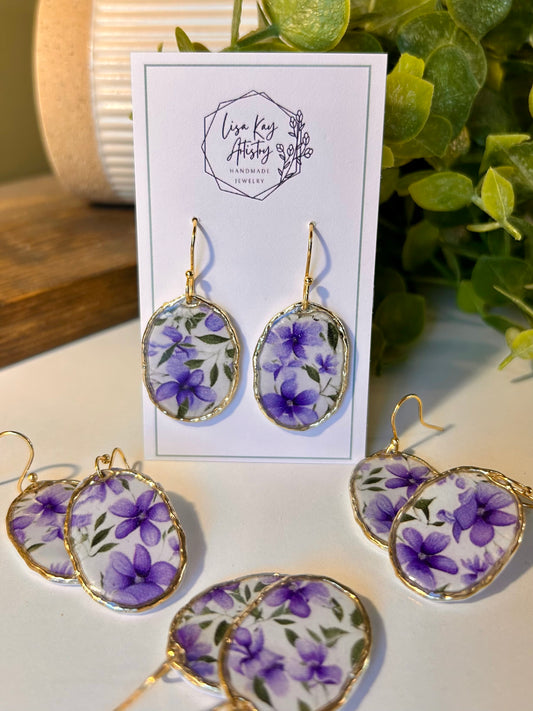 Violet Print Framed Oval Dangle
