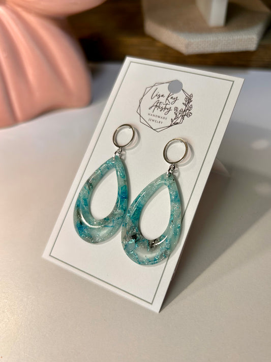Northern Lights Open Tear Drop Medium in Teal Blue Aqua Black