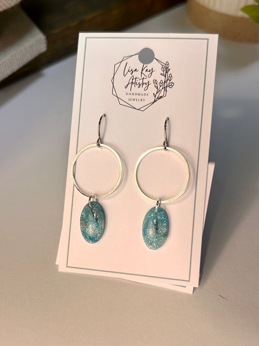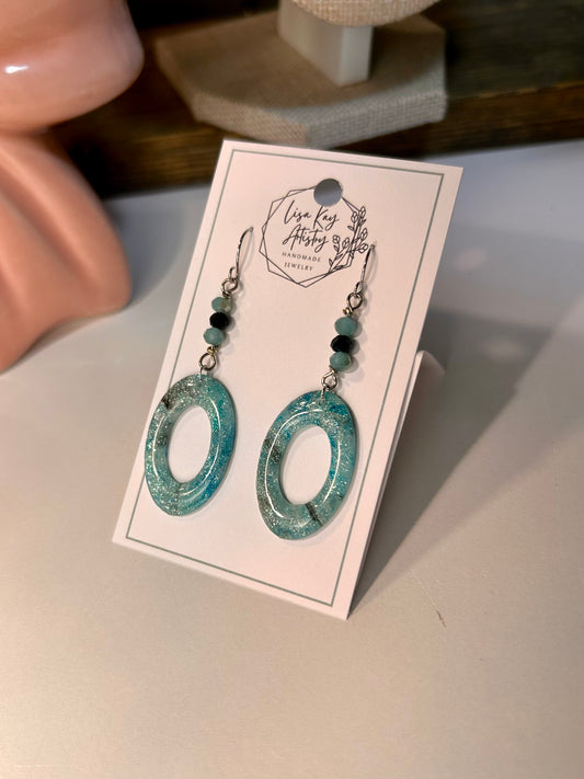 Northern Lights Ovals and Silver Rings in Teal Blue Aqua Black