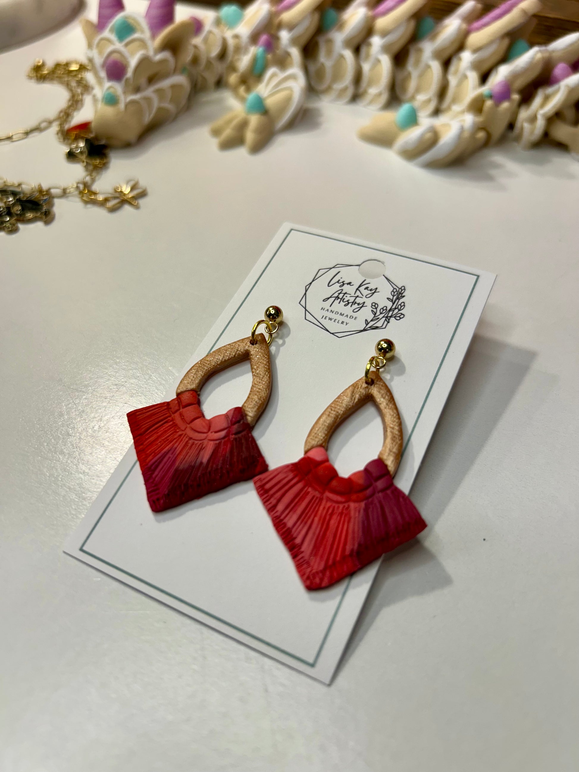 Boho Fringe Handmade Polymer Clay Red Dangle Earrings