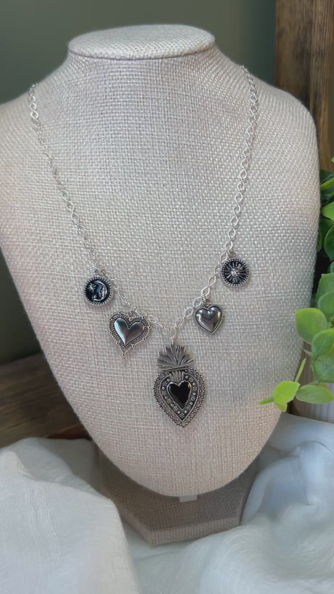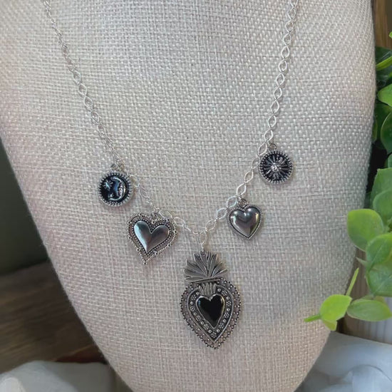 Celestial Hearts Charm Necklace Stainless Steel Silver color.