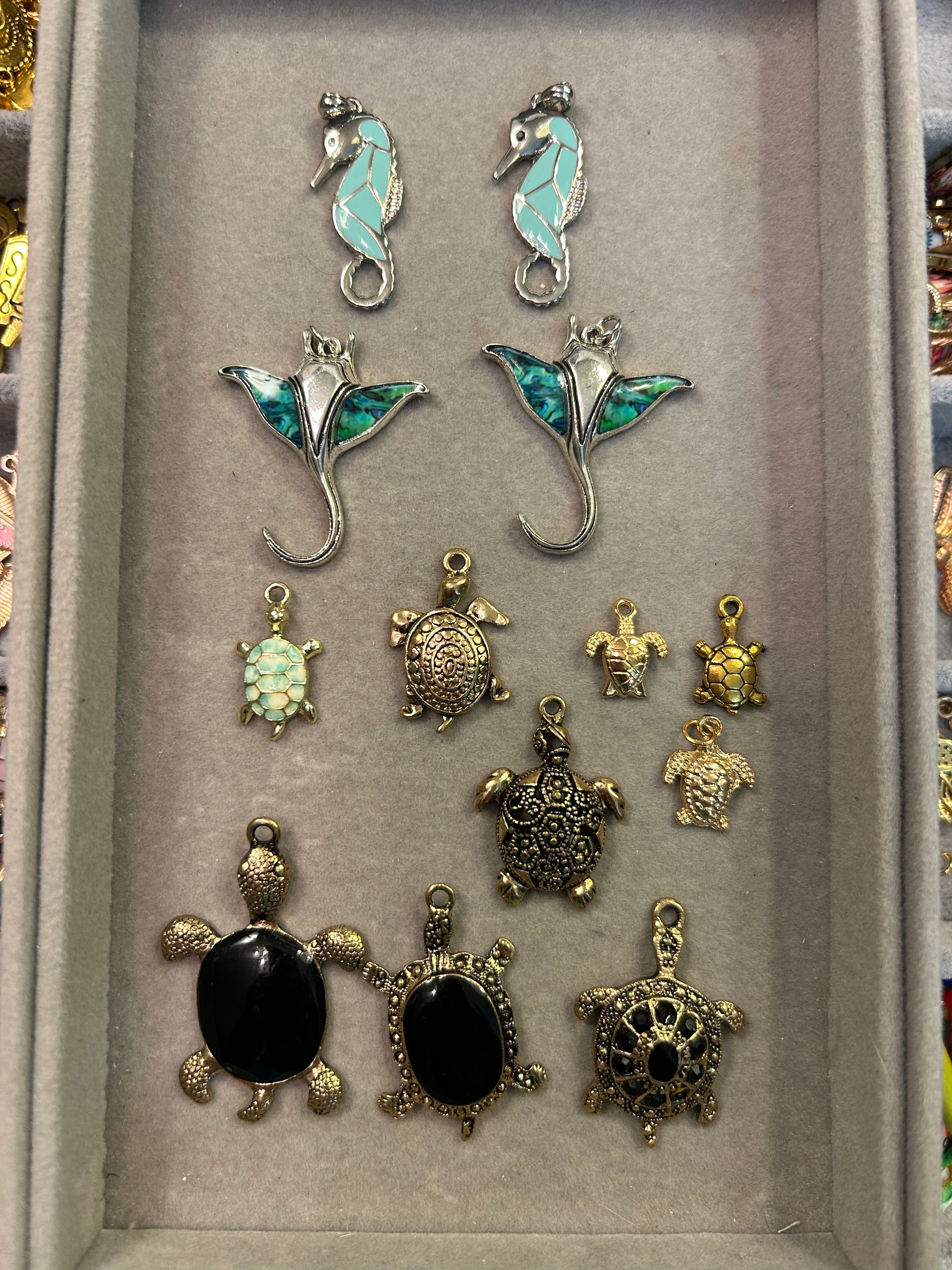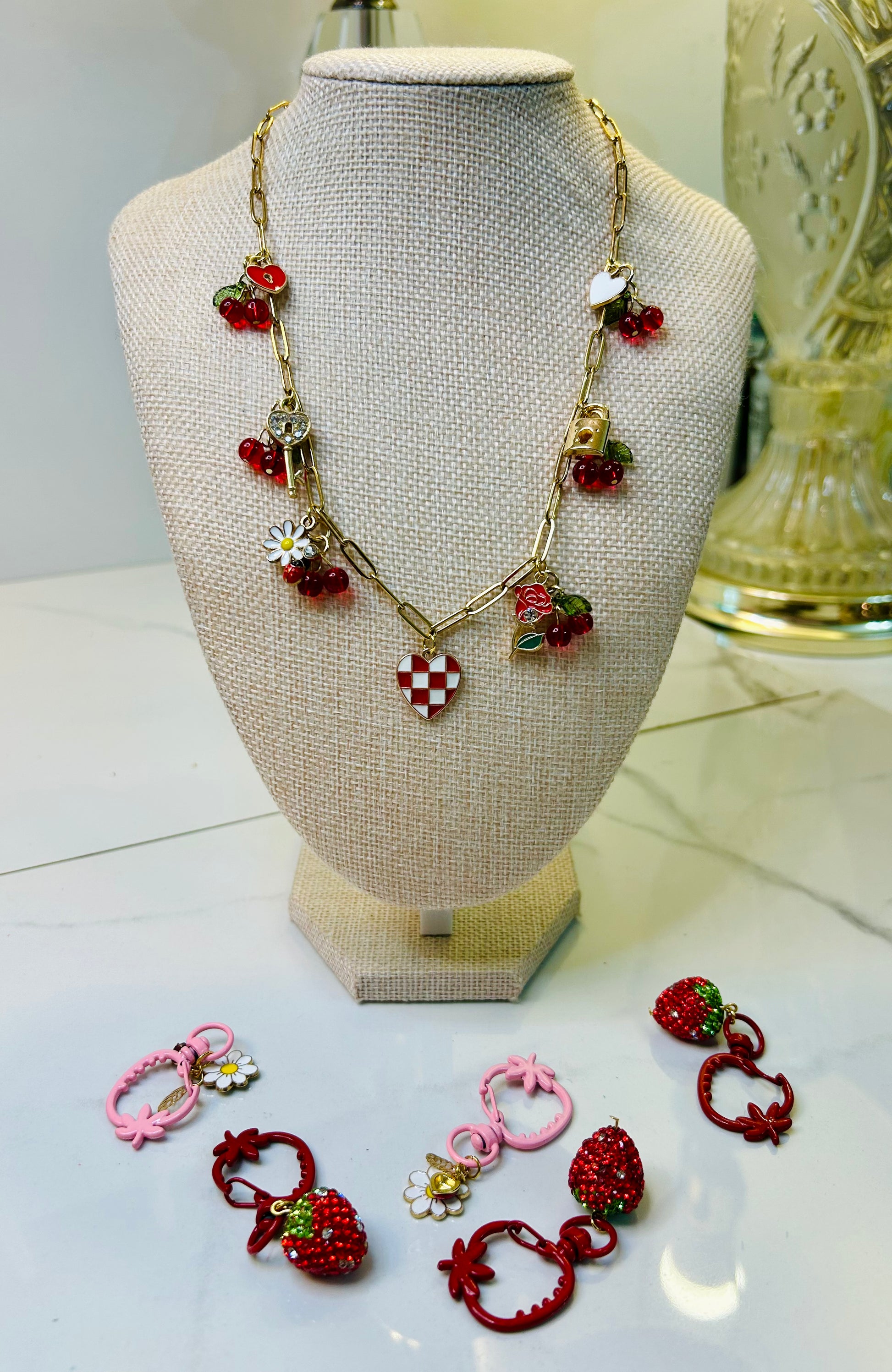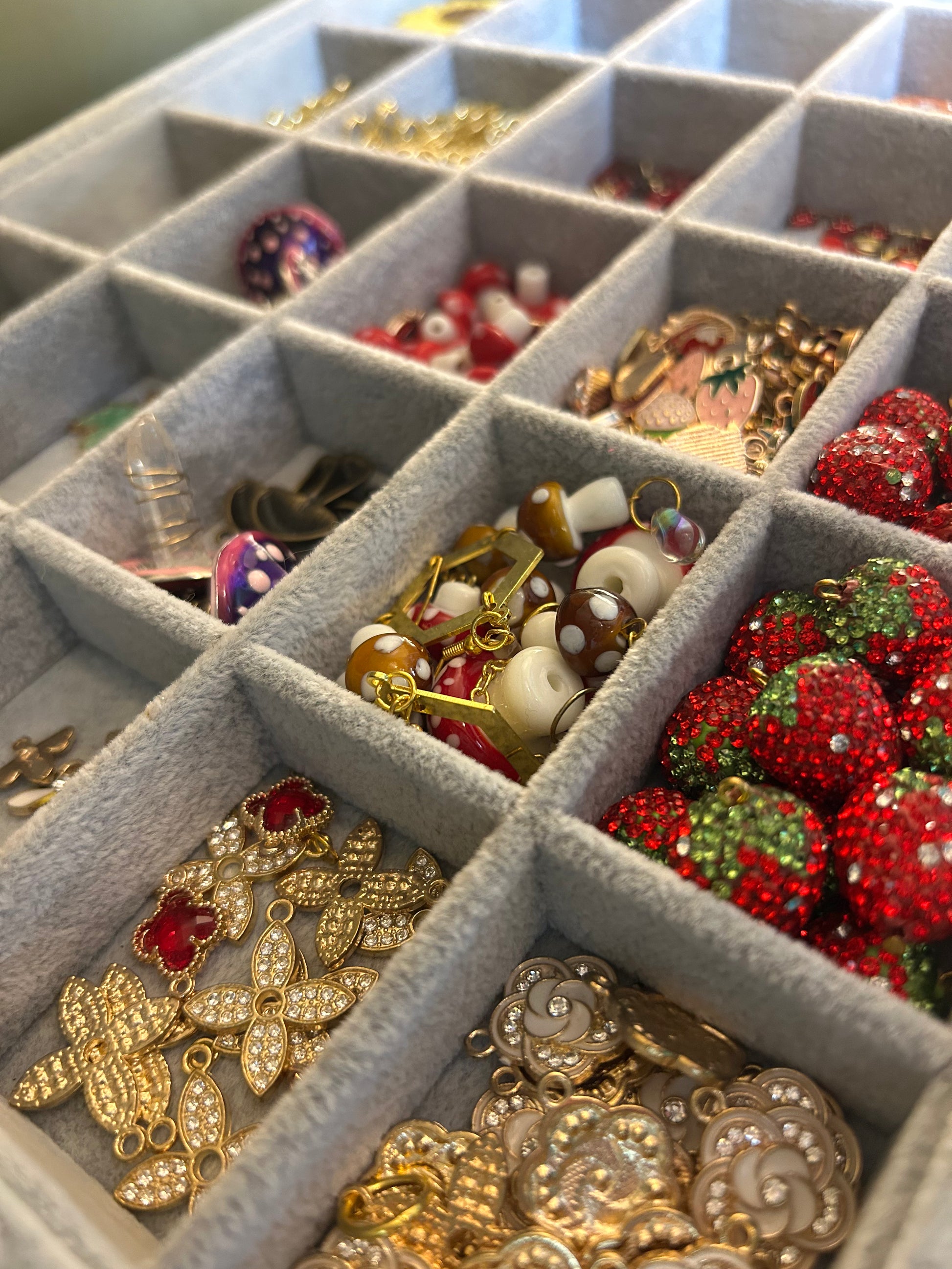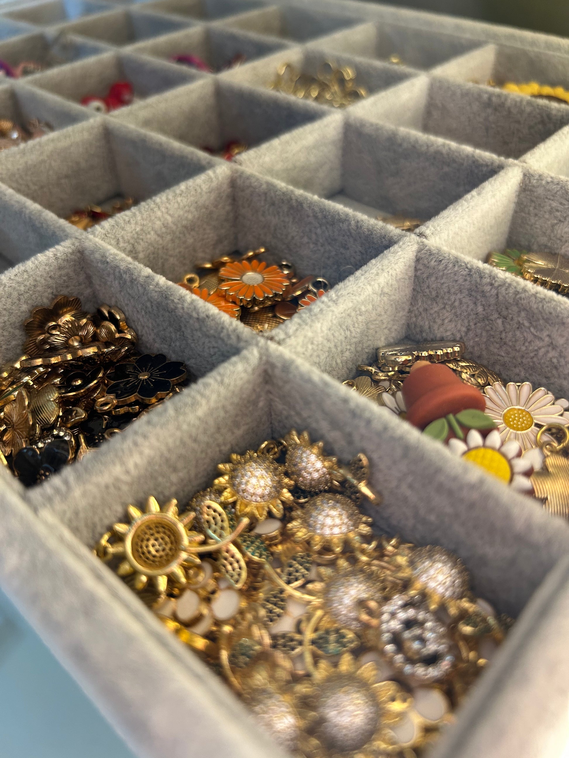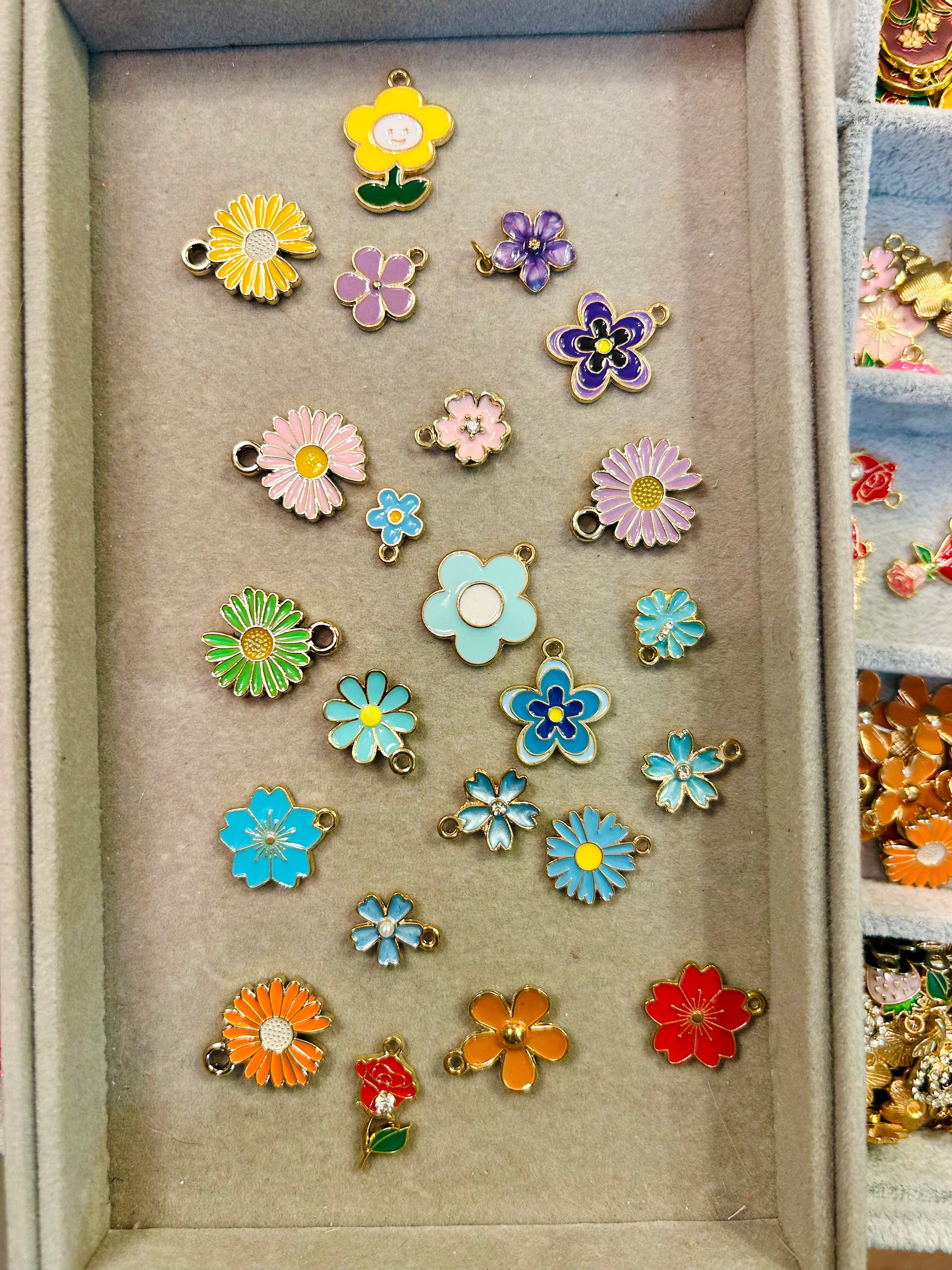 1) You choose the minimum number of charms you think you want. We can add in if needed.2) In the comment box at checkout, please list any details about your charms or chain. Delicate, or paperclip, chain metal type, colors of charms or themes. Some example photos have been included in the pictures area, but our charms change weekly.