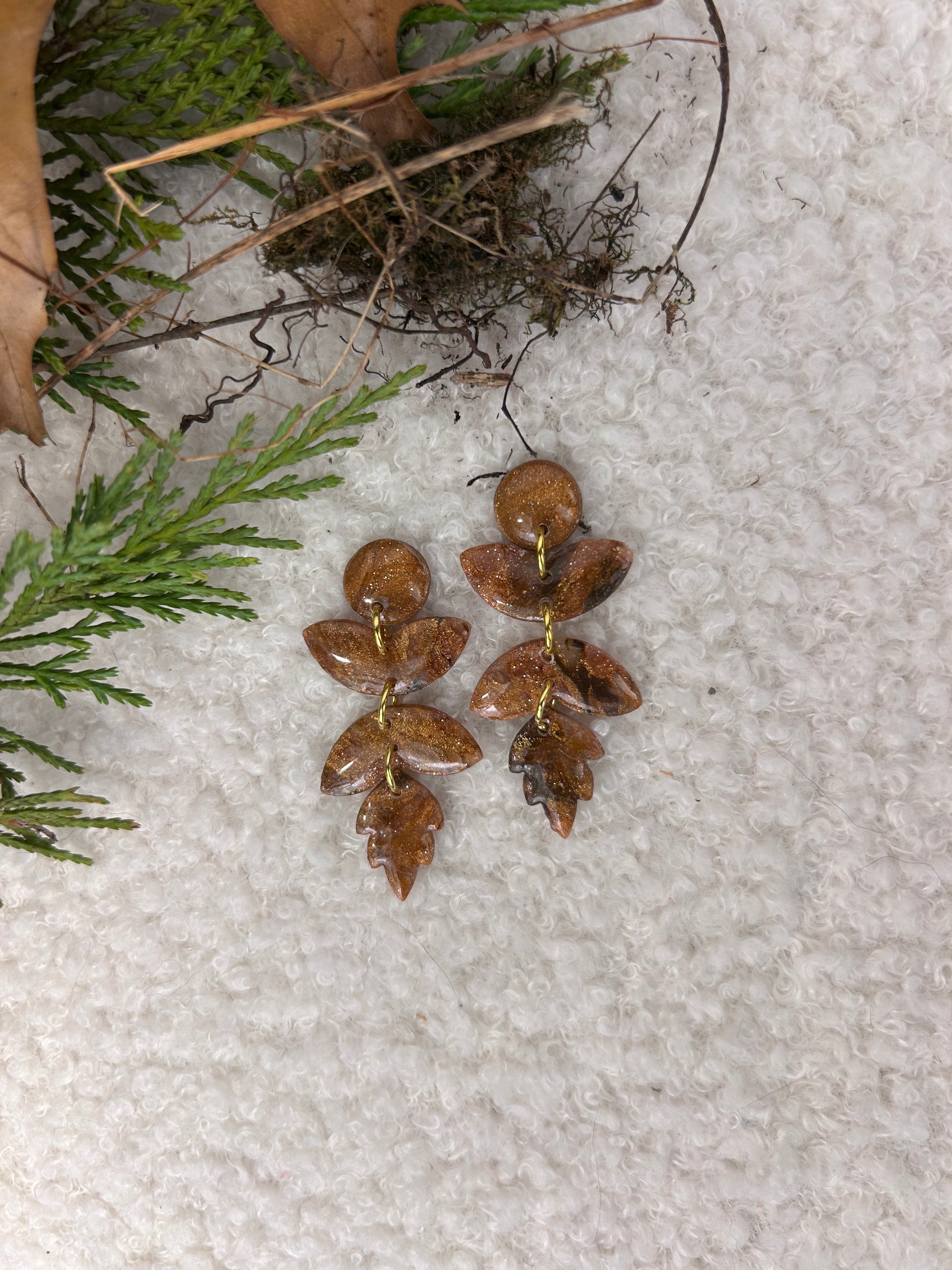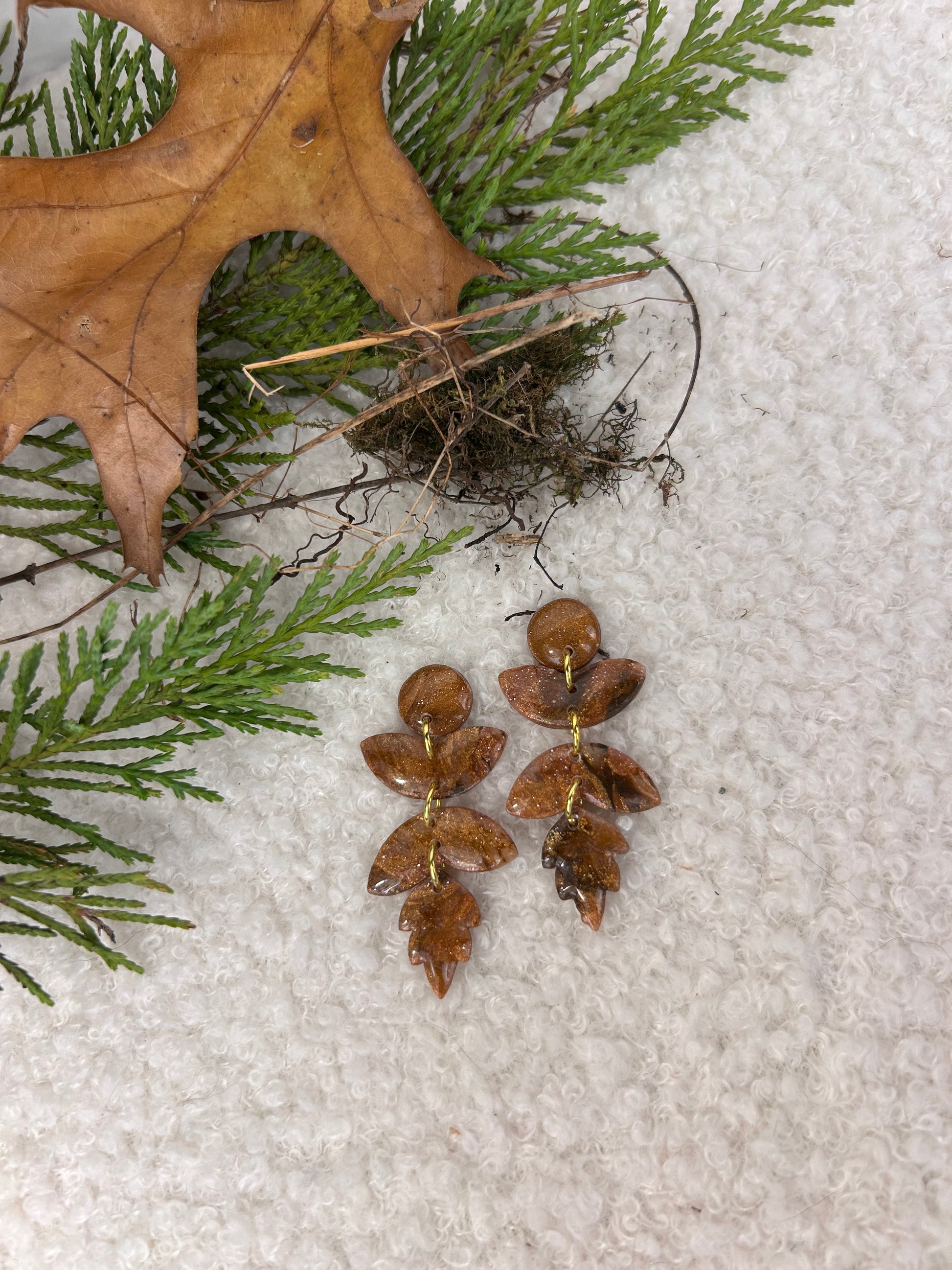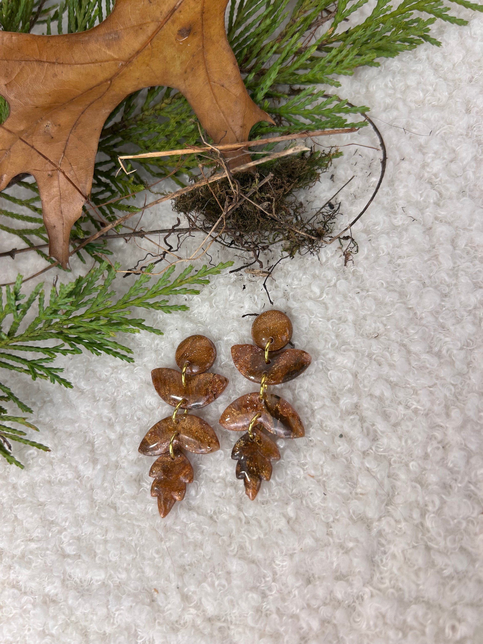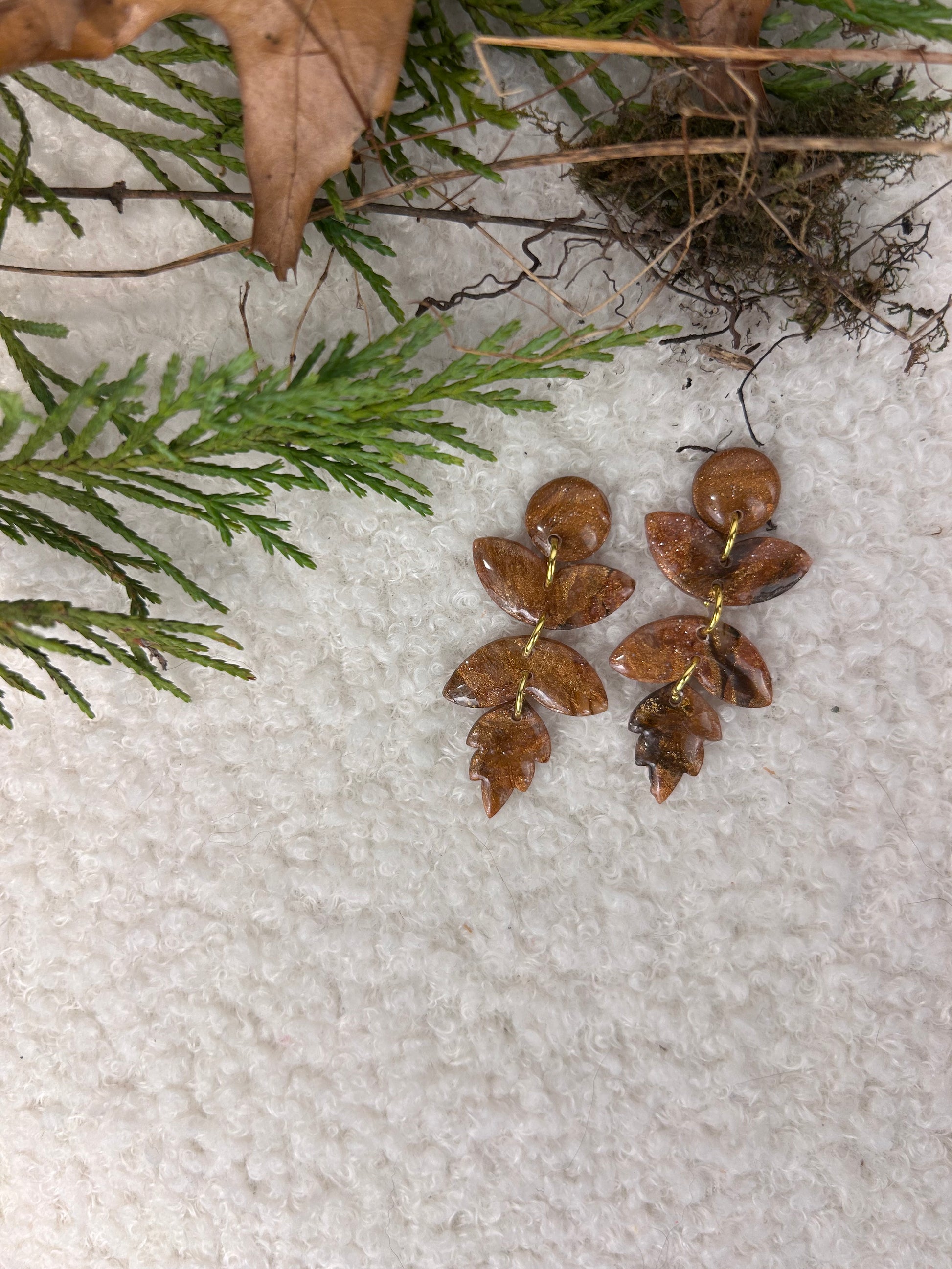Forest Floor Leaf Stack 2 Gold Dangles handmade Brown and Gold Earrings