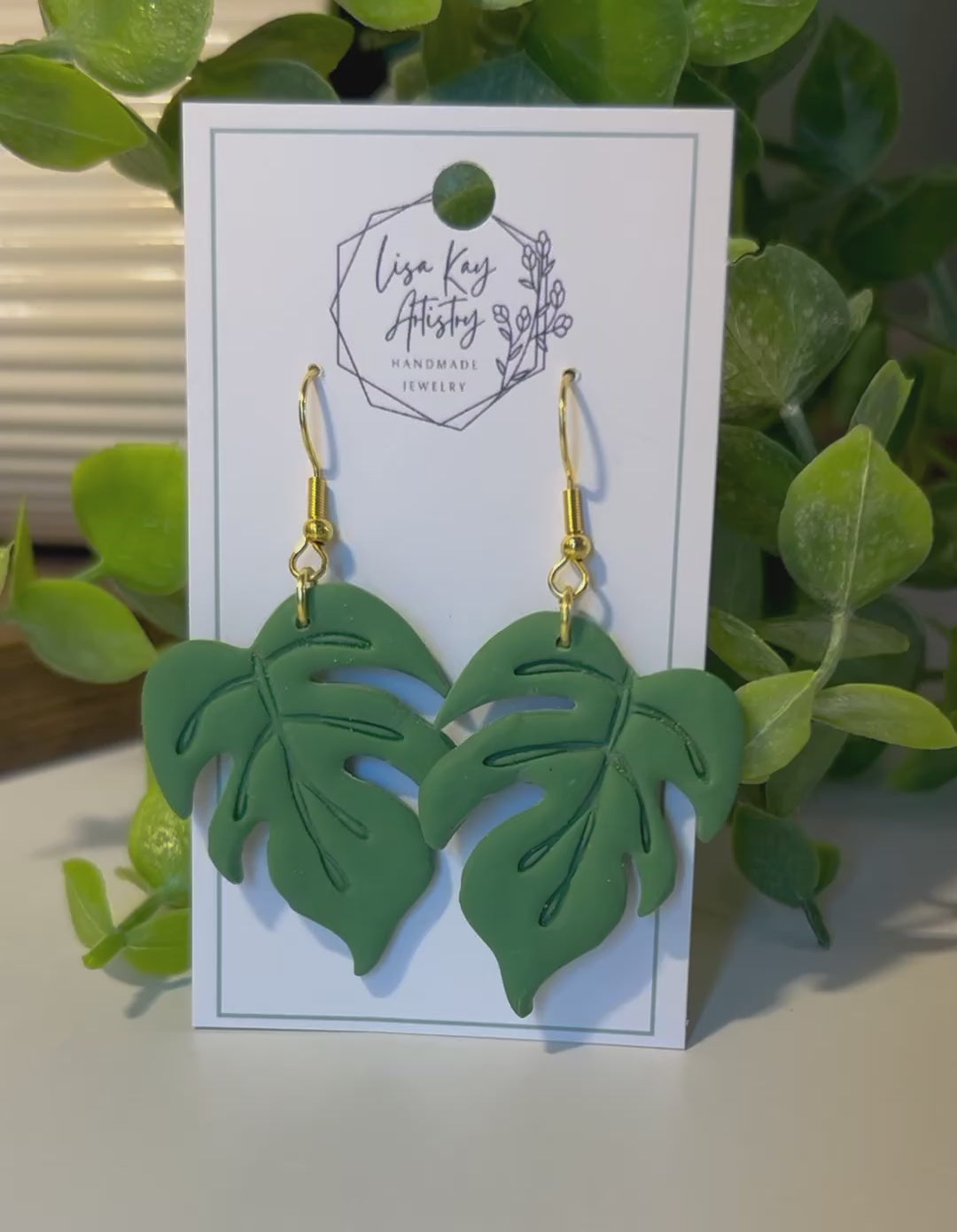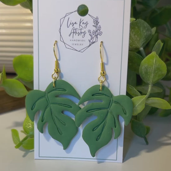 Our soft sage green monstera leaves come in a dangle or a stud, one size each.