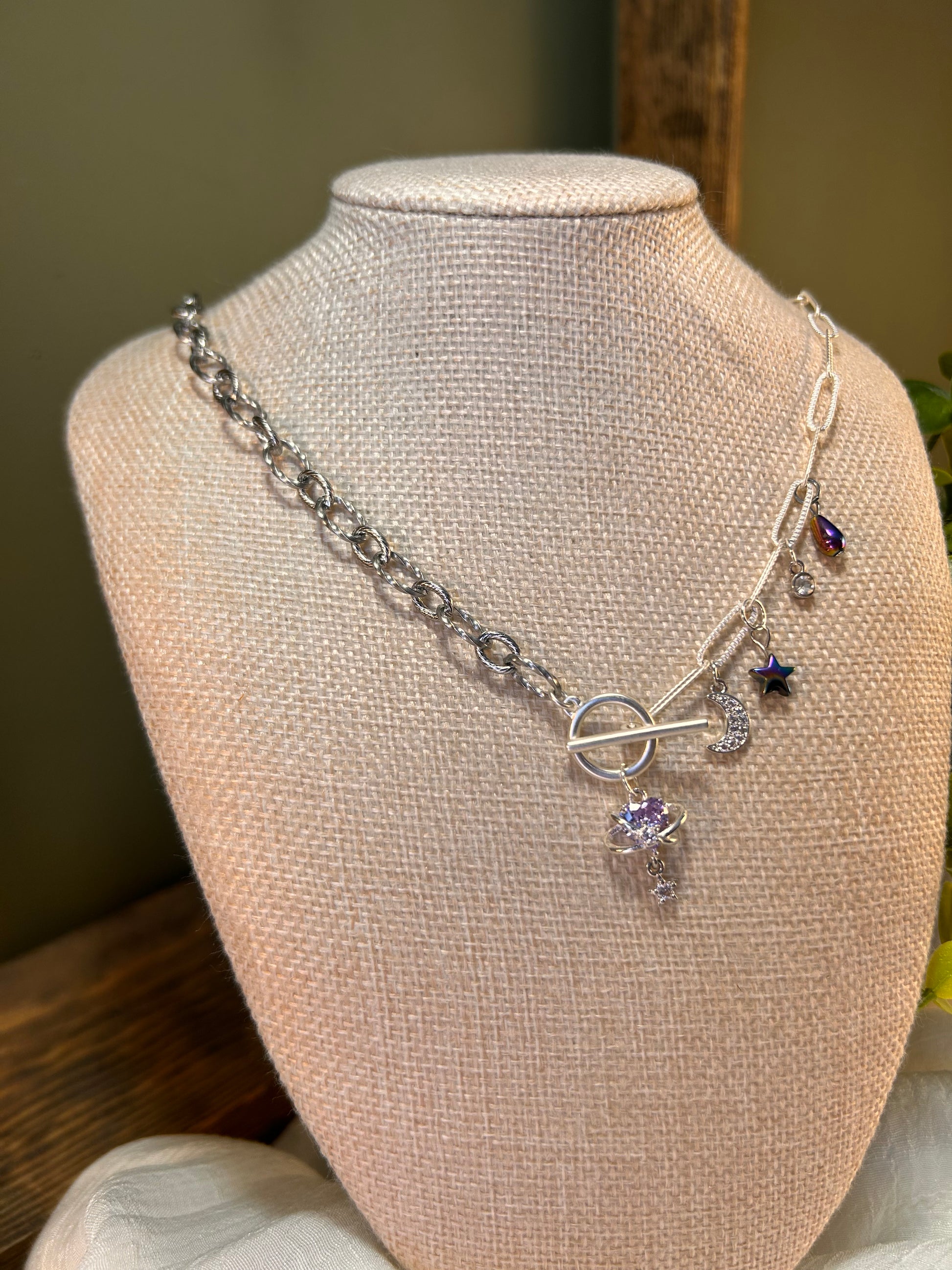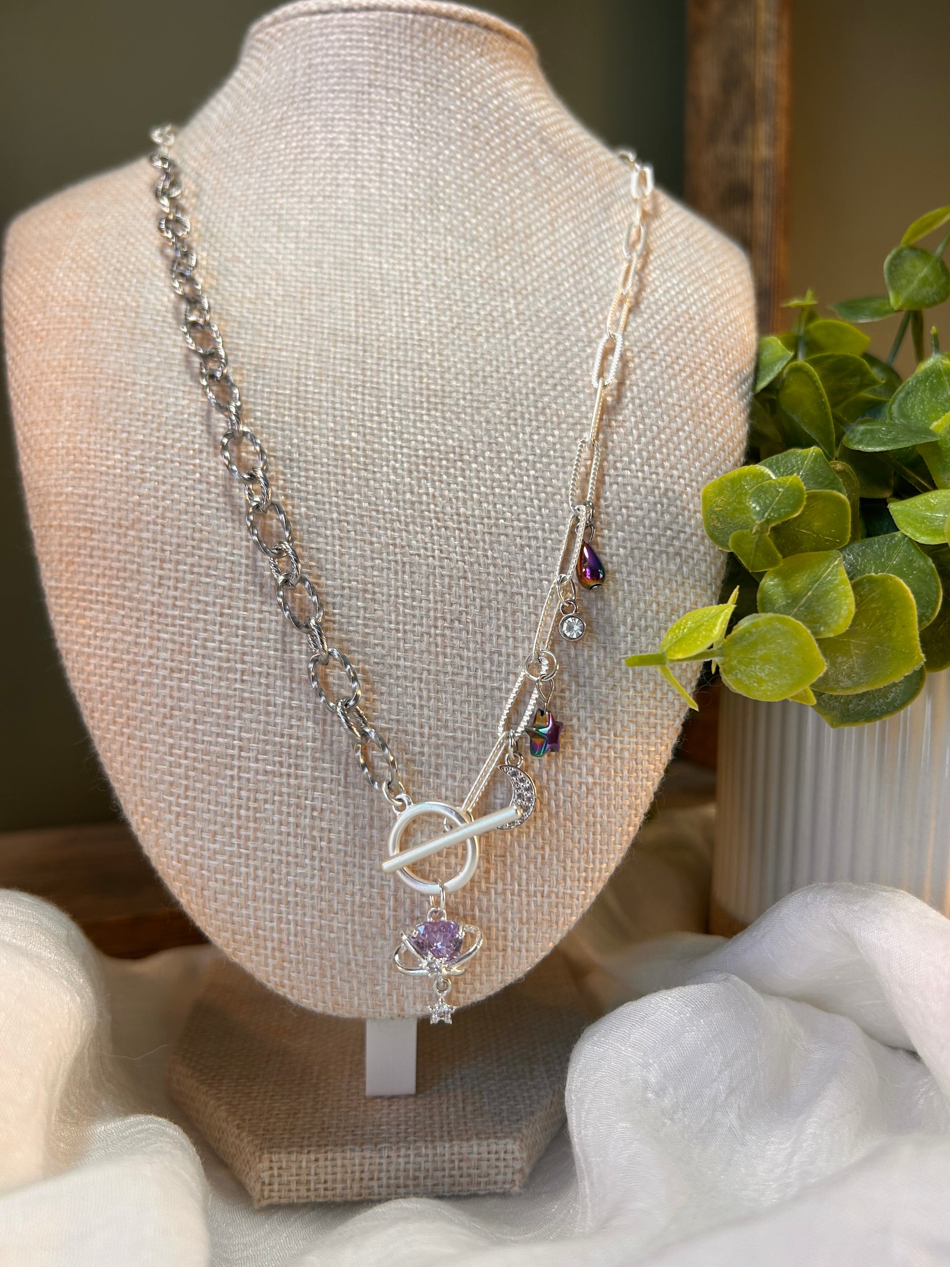 Necklace Mixed Chain Stainless Steel with Toggle Clasp 5 Charms