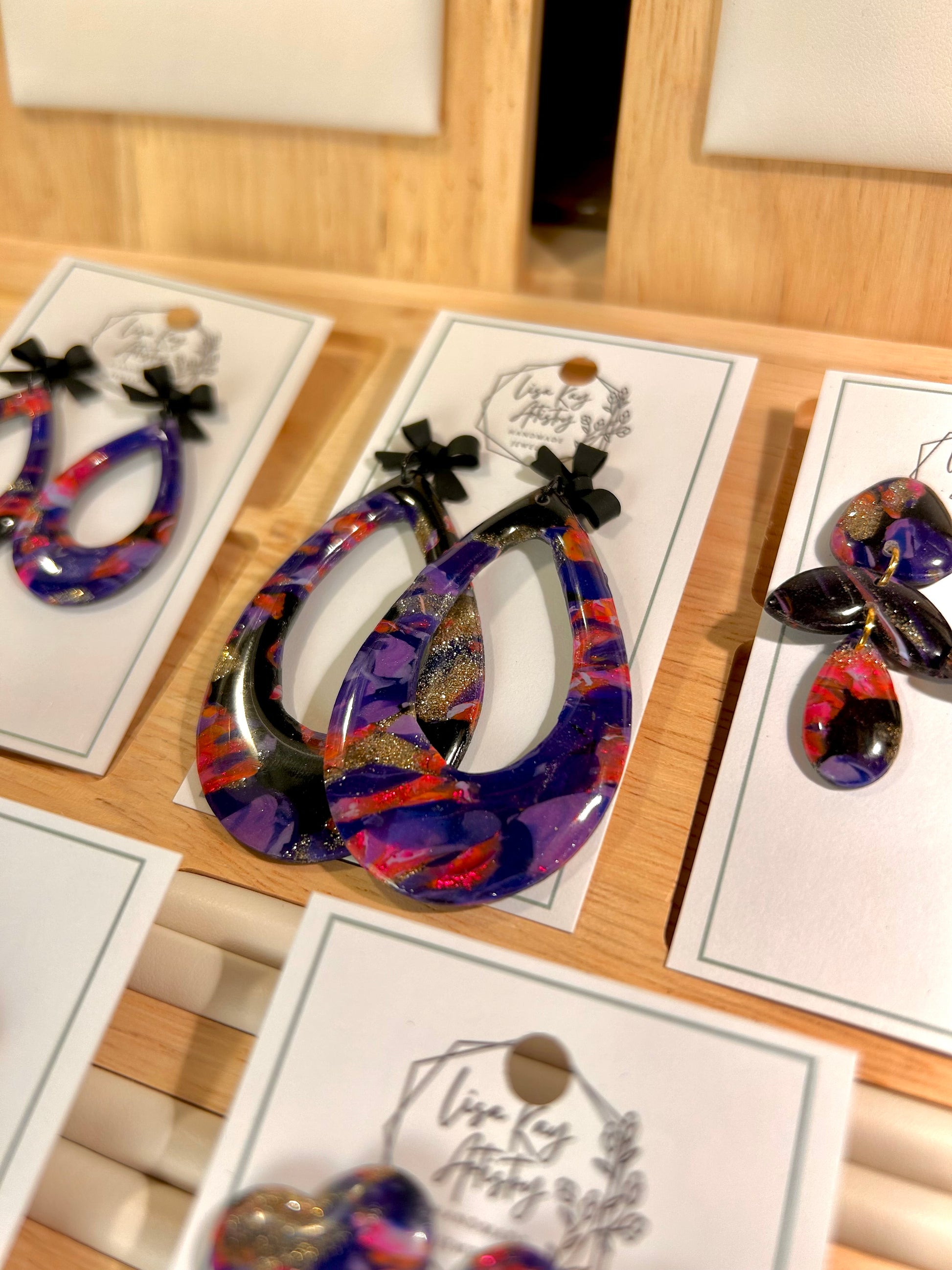 All of the colors of the collection in perfect marble of purples, violet, gold and blue are showcased this statement piece.