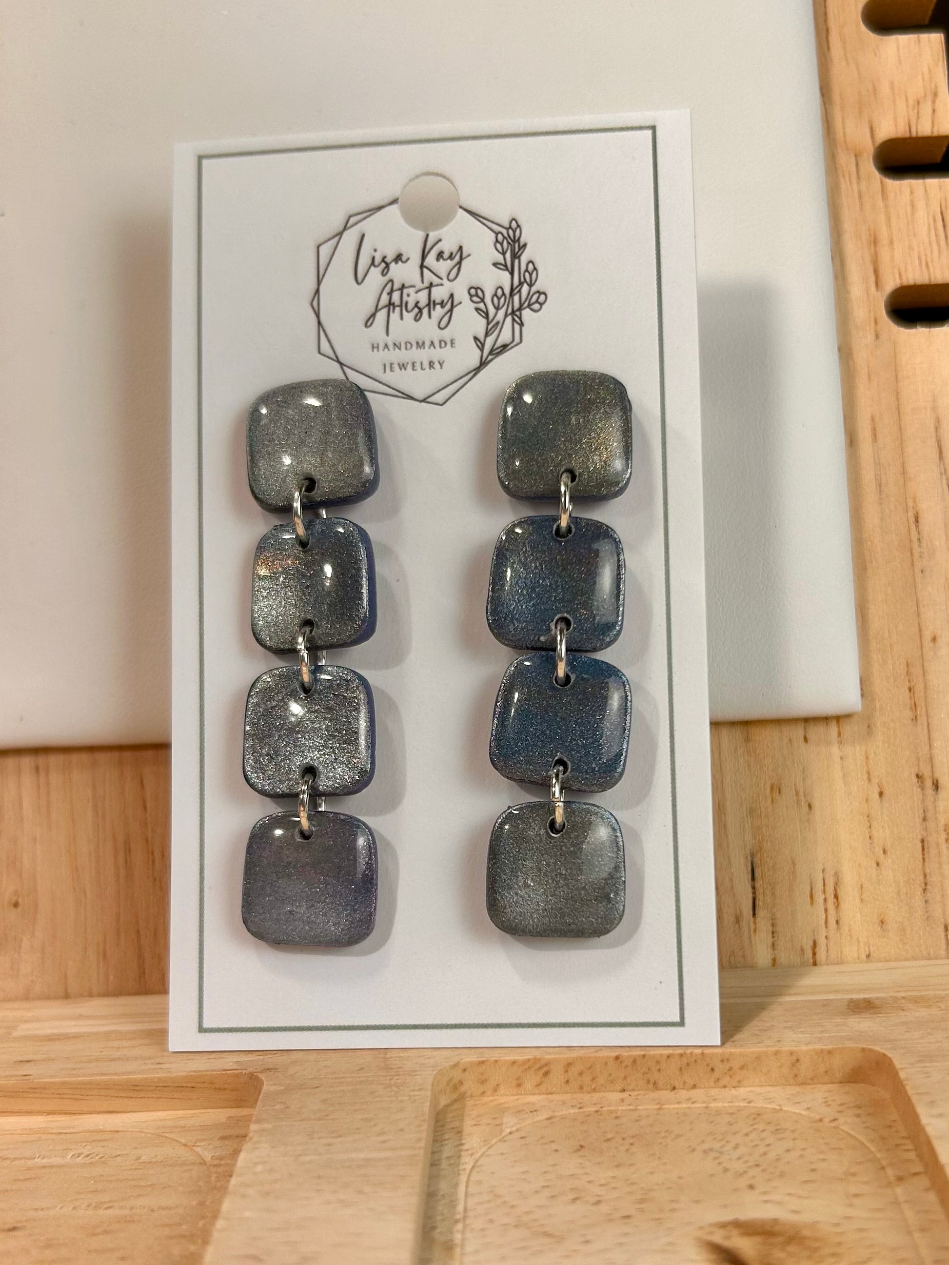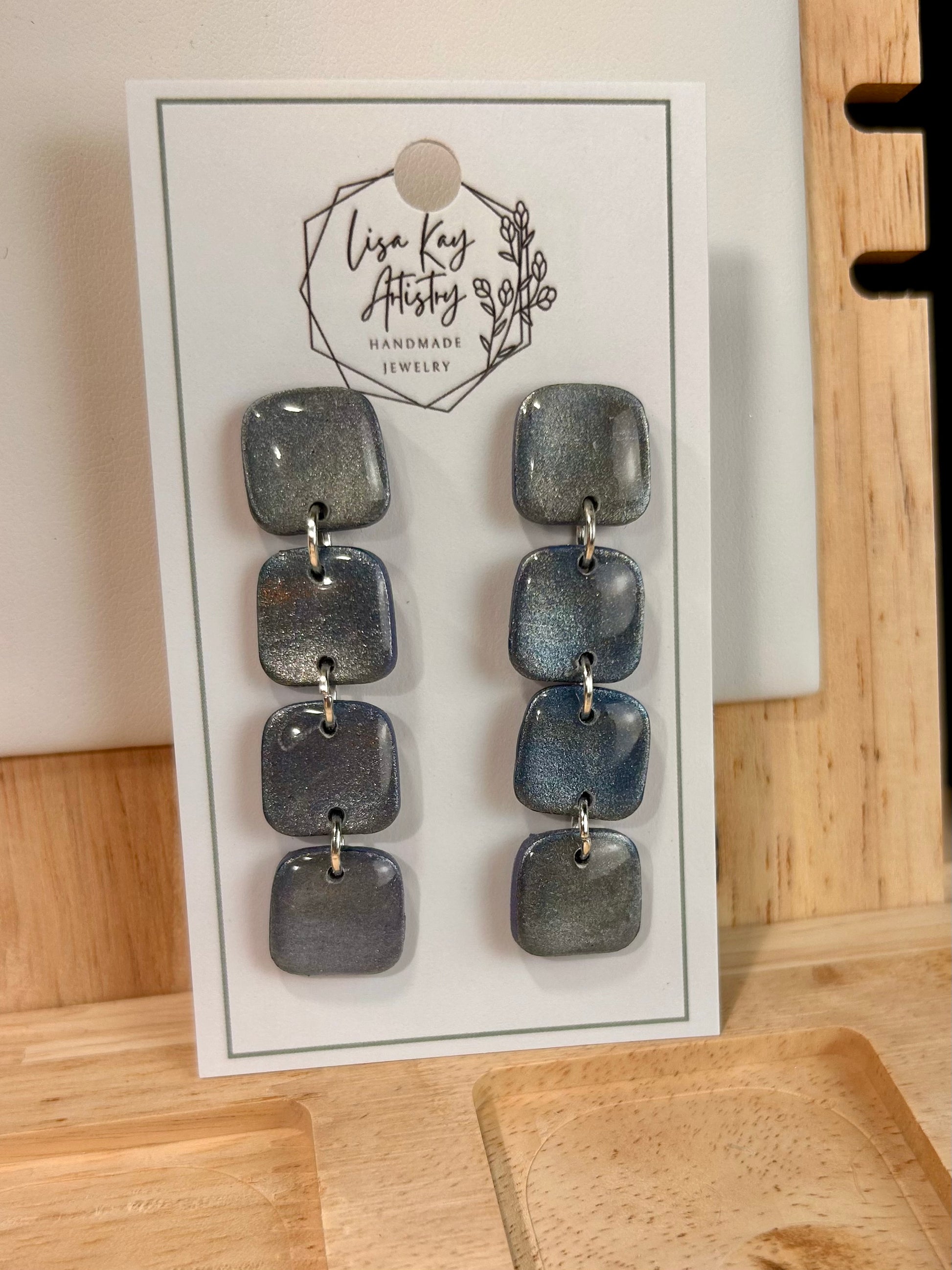 Northern Lights Steel Blue Small Rounded Square Dangles