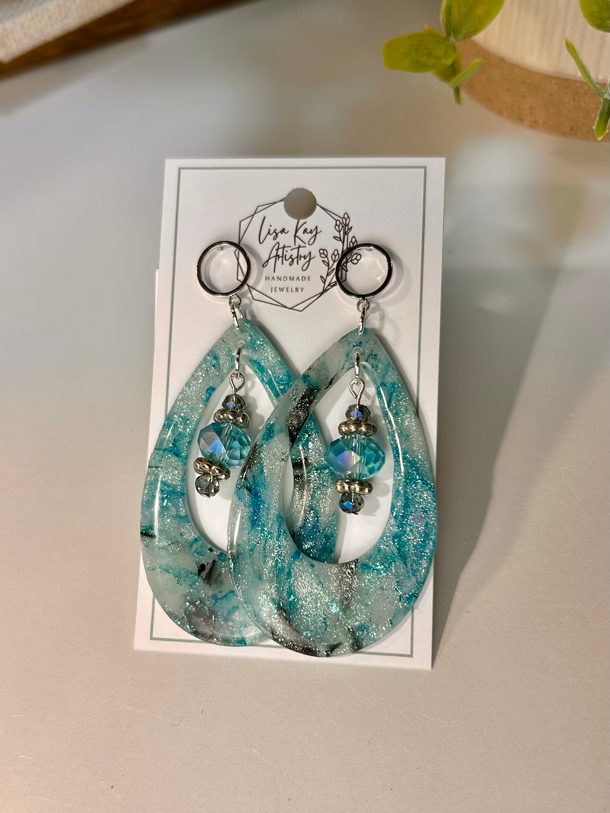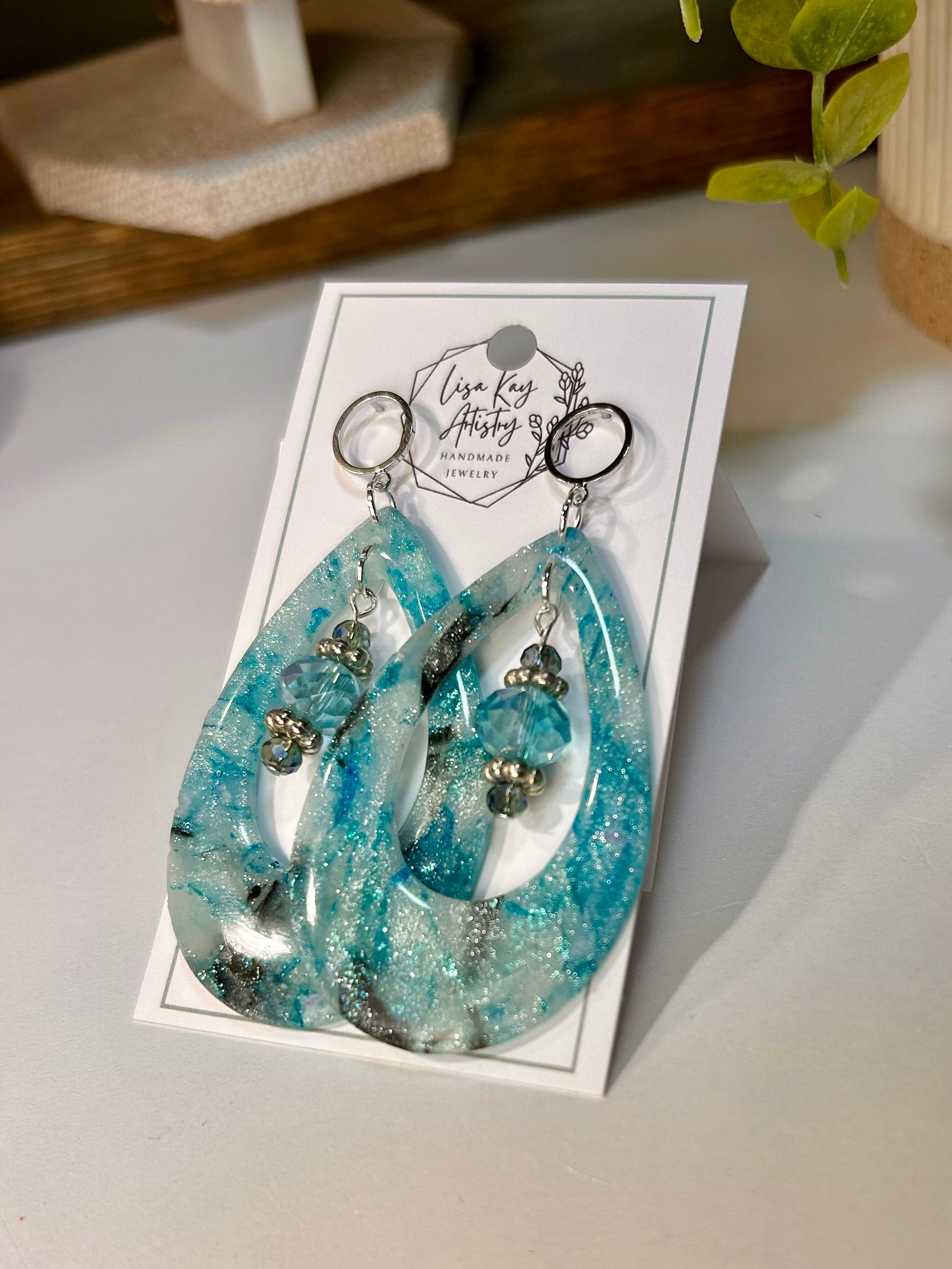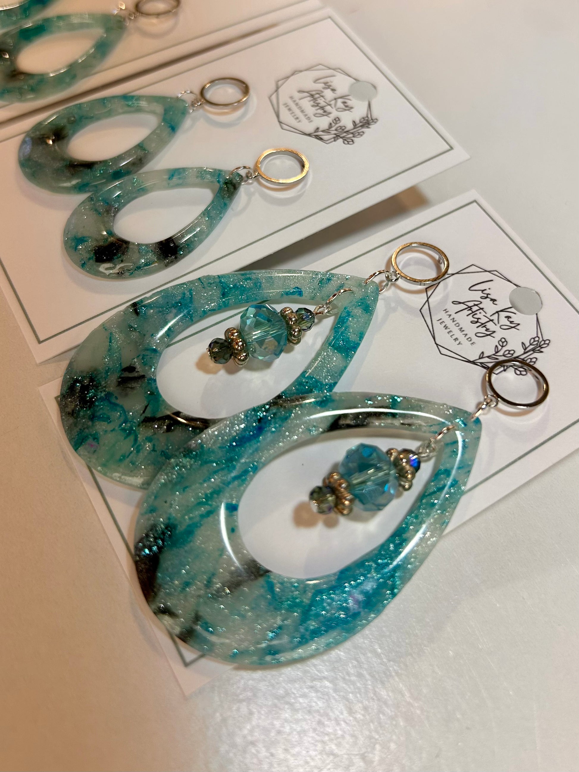 Northern Lights Tear Drop Large in Teal Blue Aqua Black Statement