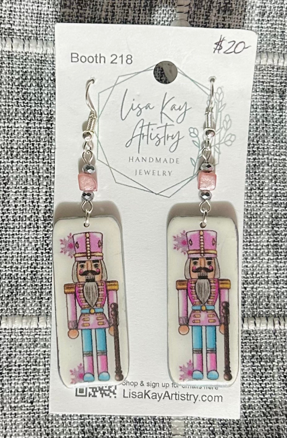 Such a handsome pair of earrings! Perfect for your nutcracker graphic t shirts! Pink beads to match!