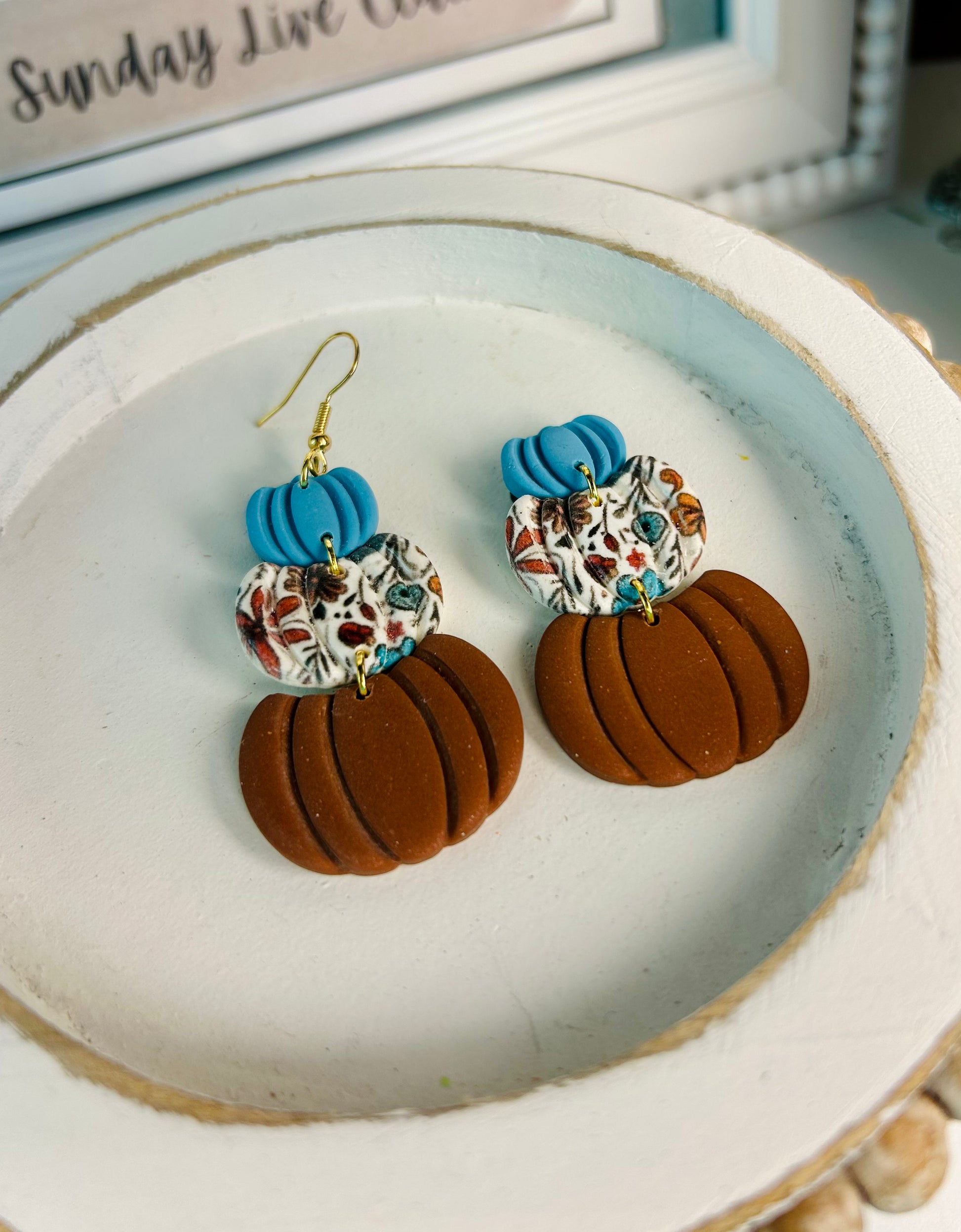 Teal Floral Pumpkins Studs or single dangles
