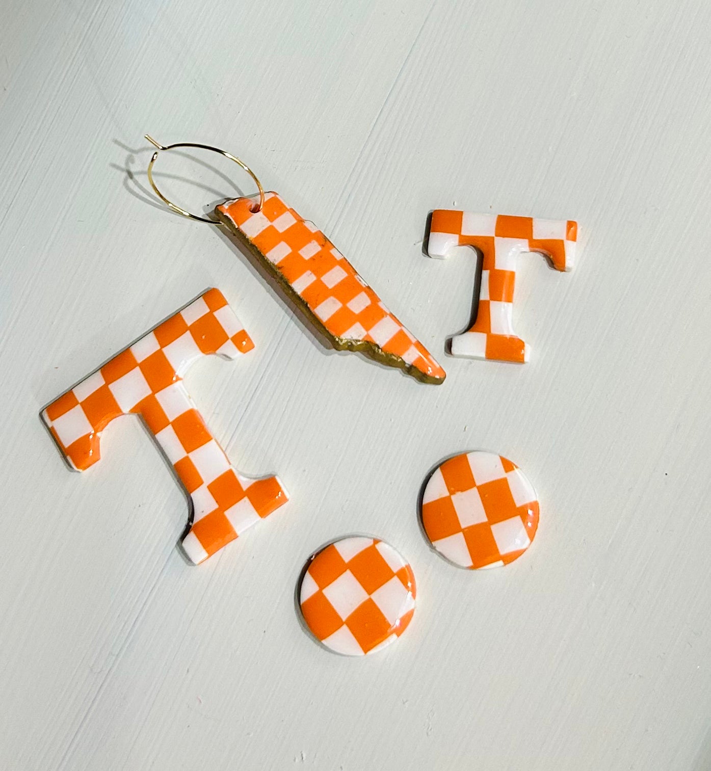 Tennessee Checkerboard T - 1 inch dangle with disk charm