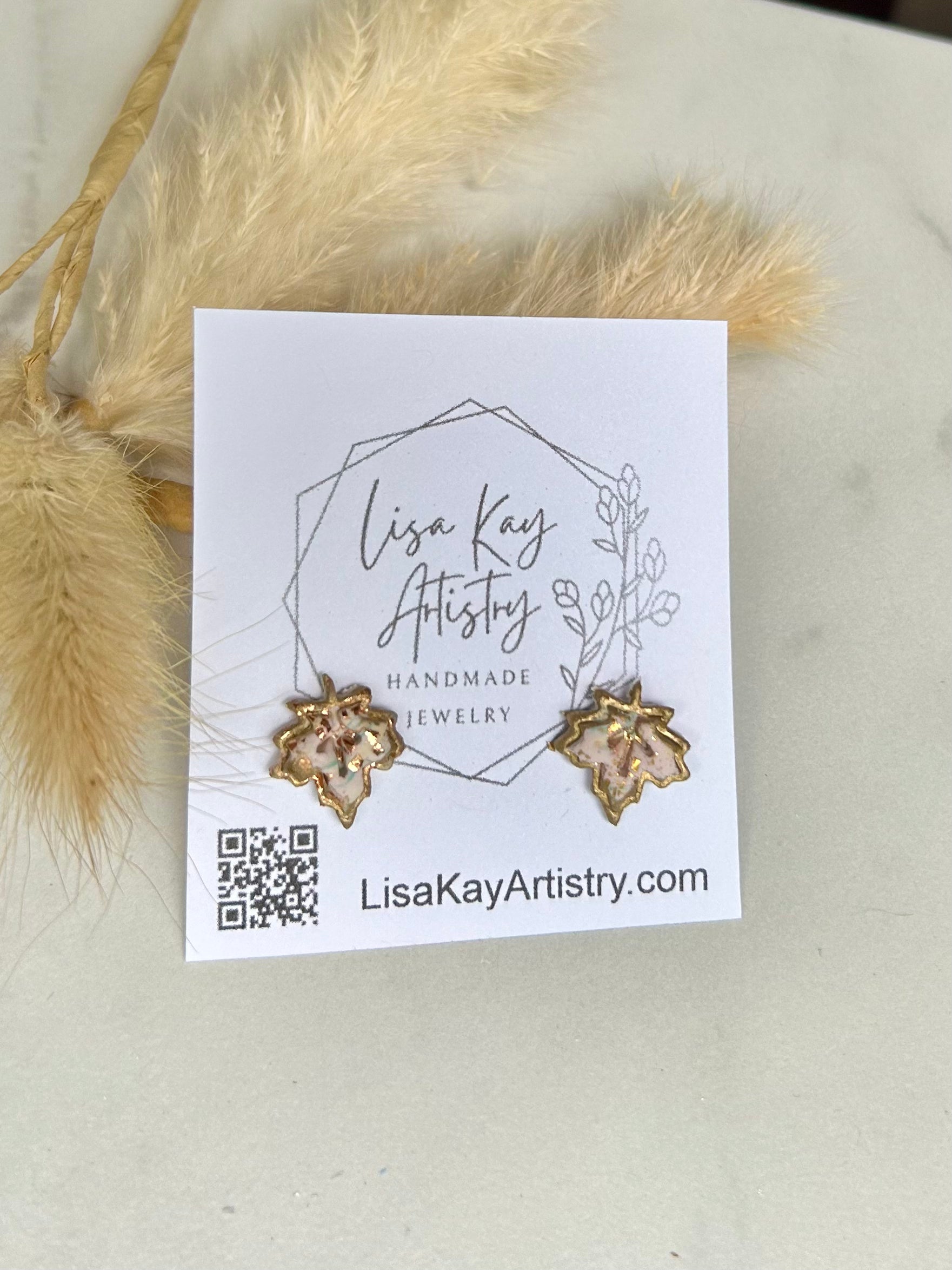 Measuring just under 1/2 inch wide, each leaf is rimmed with gold leaf paint for that extra glint! Stud only.